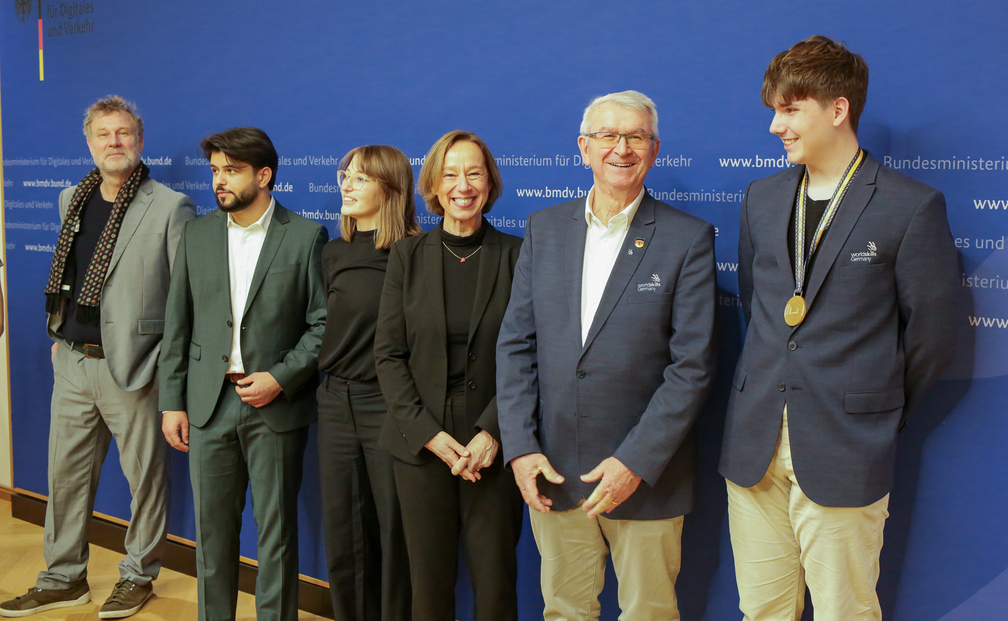 Berlin – Nach dem Gewinn der Goldmedaille bei den WorldSkills Lyon 2024 wurde das deutsche Nationalteam in der Disziplin Digital Construction offiziell im Bundesministerium für Digitales und Verkehr (BMDV) empfangen. Bundesminister Dr. Volker Wissing, Schirmherr des Nationalteams Digital Construction, würdigte damit die außergewöhnliche Leistung des Teams und die wachsende Bedeutung des digitalen Bauens für den Standort Deutschland.