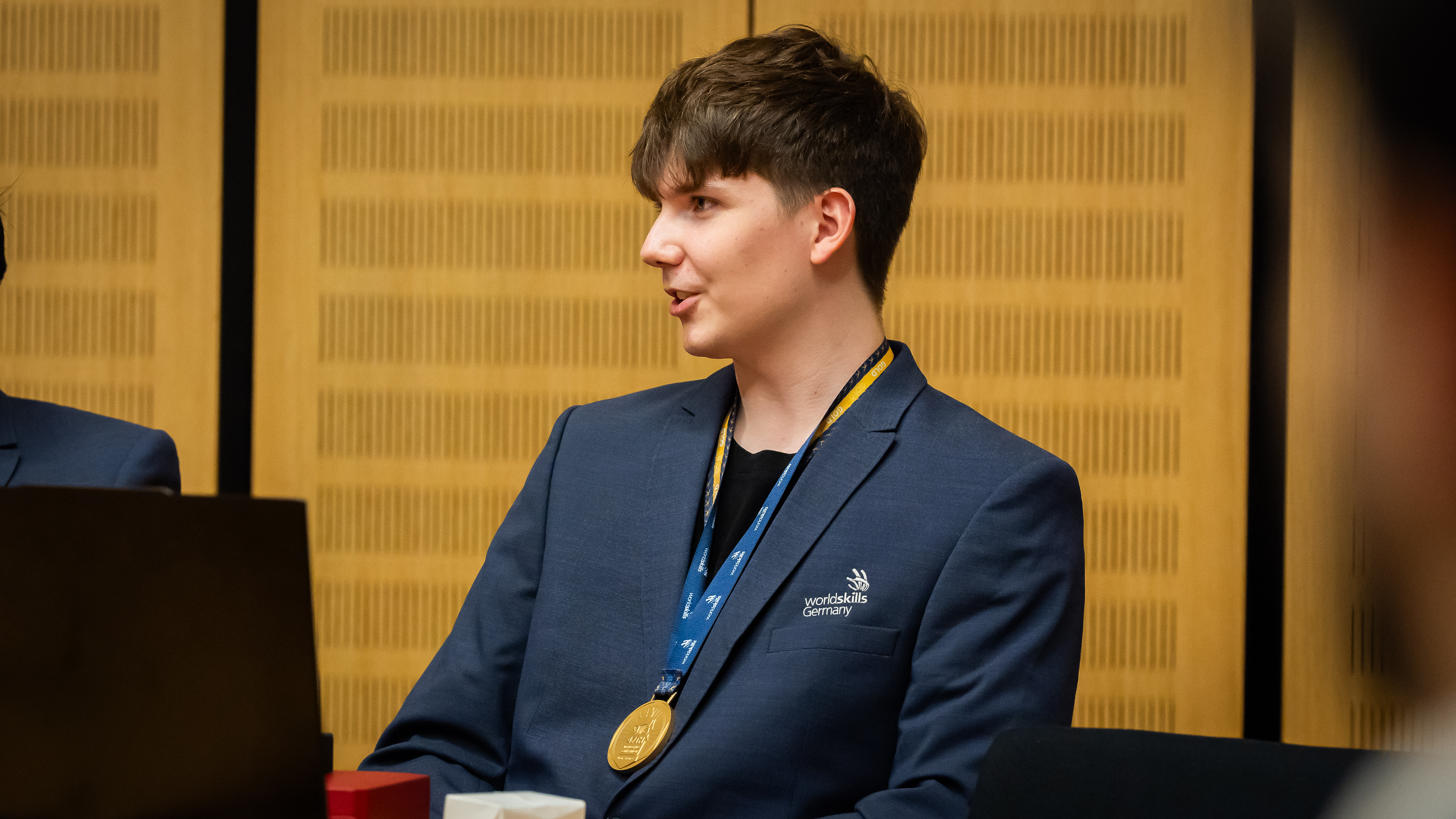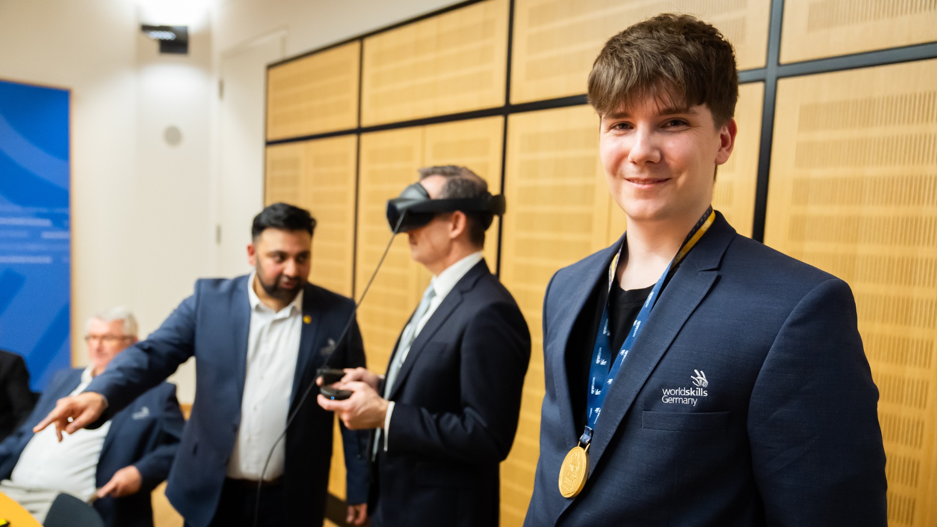 Im Mittelpunkt des Empfangs stand der Weltmeistertitel im Skill „Digital Construction“, der bei den WorldSkills 2024 in Lyon errungen wurde. In dieser Disziplin werden moderne Planungs- und Bauprozesse anhand realitätsnaher Aufgaben bewertet – darunter: